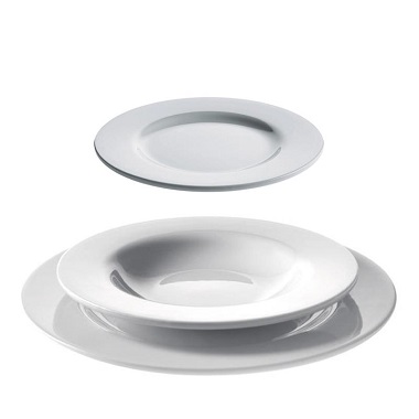 Servizio di piatti tè e caffè in porcellana bianca. Catalogo A di ALESSI. Design: Jasper Morrison